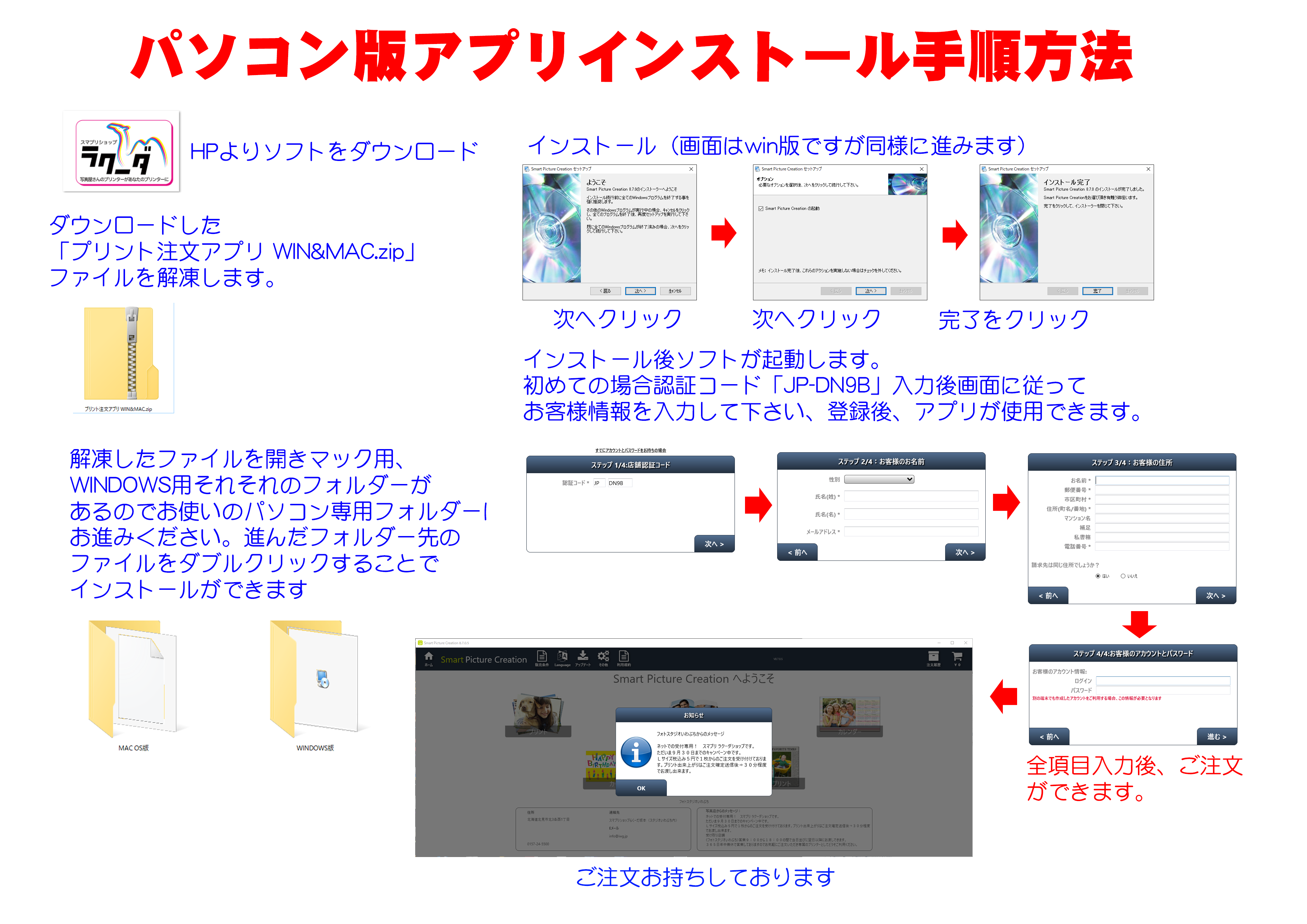専用パソコンソフトダウンロード▶  プリント注文アプリ WIN&MAC.zip